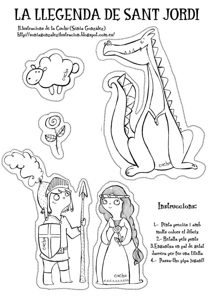 Fuente: Títeres de Sant Jordi para pintar y recortar
