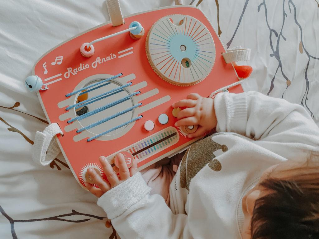 La peque de la casa lleva unos días jugando con la Radio de Anaïs, un panel de juegos hecho de madera como base, y que cuenta con un montón de materiales y actividades para que los niños y niñas exploren.