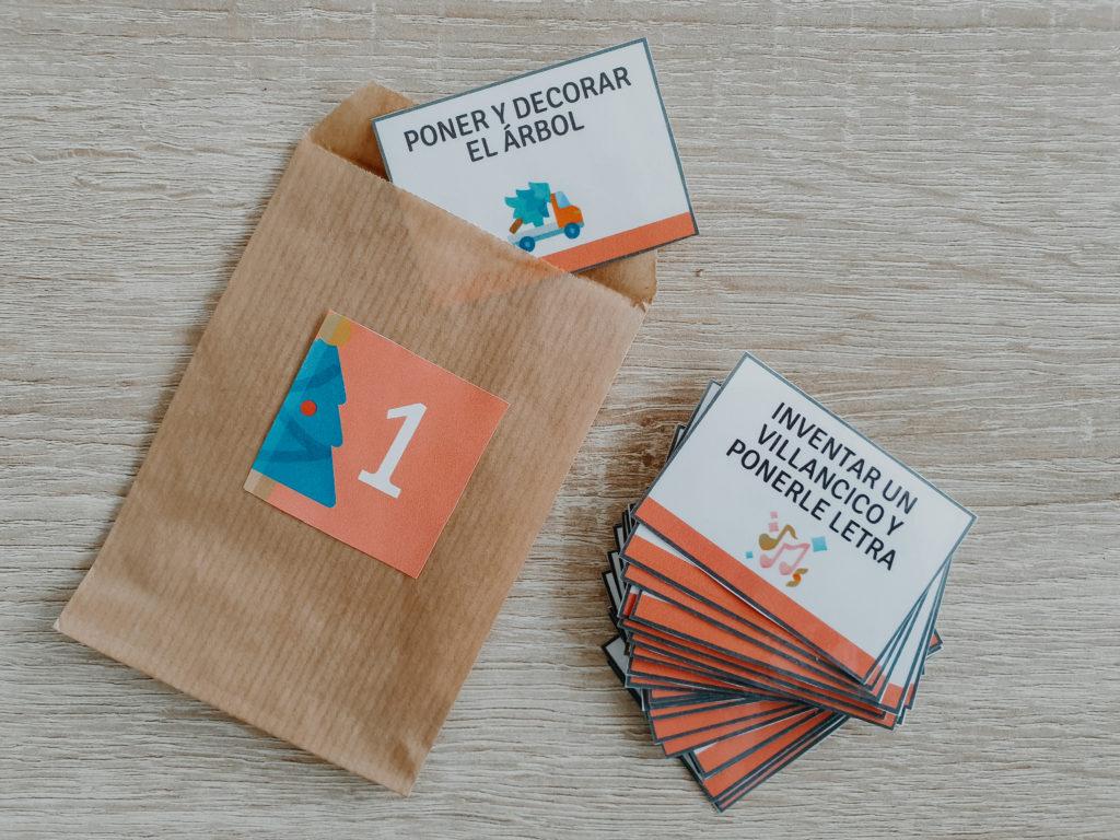 - Coloca las tarjetas en sobres o cajitas, pegando los números encima para la cuenta atrás.