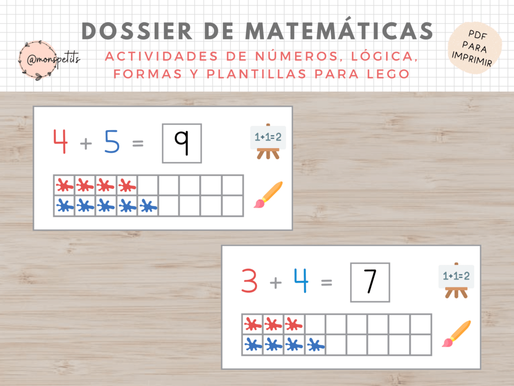 Hoy os comparto un Dossier de Matemáticas para niños y niñas de entre 2 y 6 años aproximadamente. Un dossier que contiene 28 actividades y 70 páginas para imprimir, con actividades de lógica, números, formas e incluso plantillas para jugar con los típicos ladrillos de plástico, como los Lego Duplo.