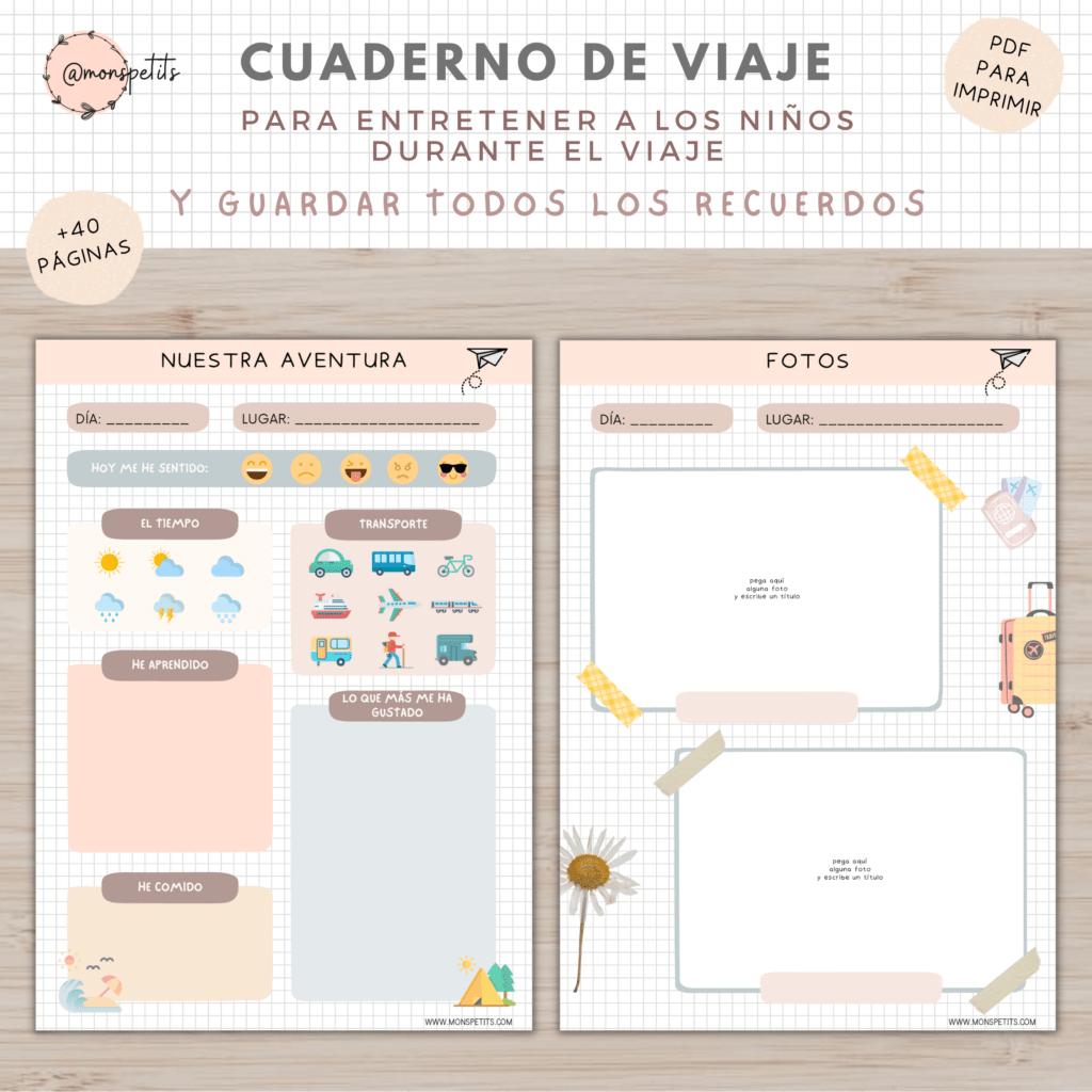 Llega el verano y, con él, las vacaciones para muchas personas. Viajar aporta a los niños y niñas nuevas experiencias y conocimientos, y qué mejor manera de aprovecharlo, que creando un diario de viaje. Es por eso que he diseñado este imprimible, donde los niños y niñas van a encontrar todo lo que necesitan para recordar cada viaje que hagan.