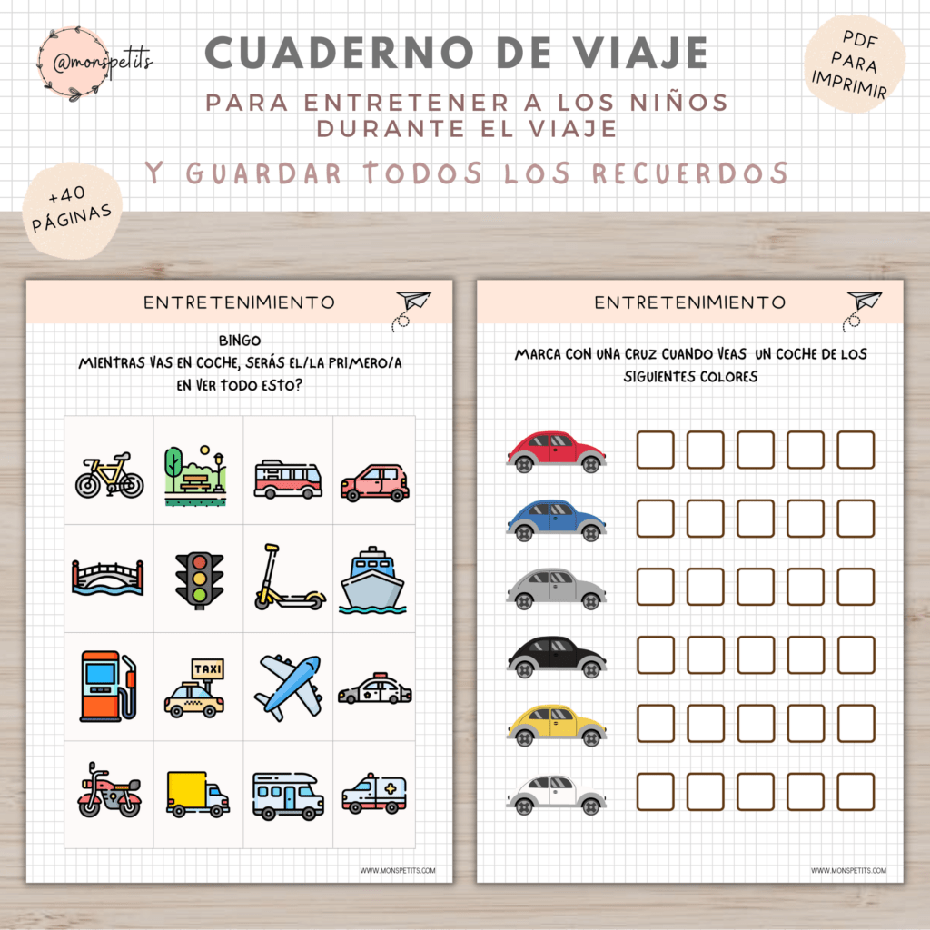 El Cuaderno de Viaje cuenta con actividades previas al viaje y preparativos, con una parte de diario donde narrar todas las aventuras y algunas páginas de entretenimiento, para que los niños y niñas ocupen las horas de viaje en carretera, tren o avión de la forma más amena.