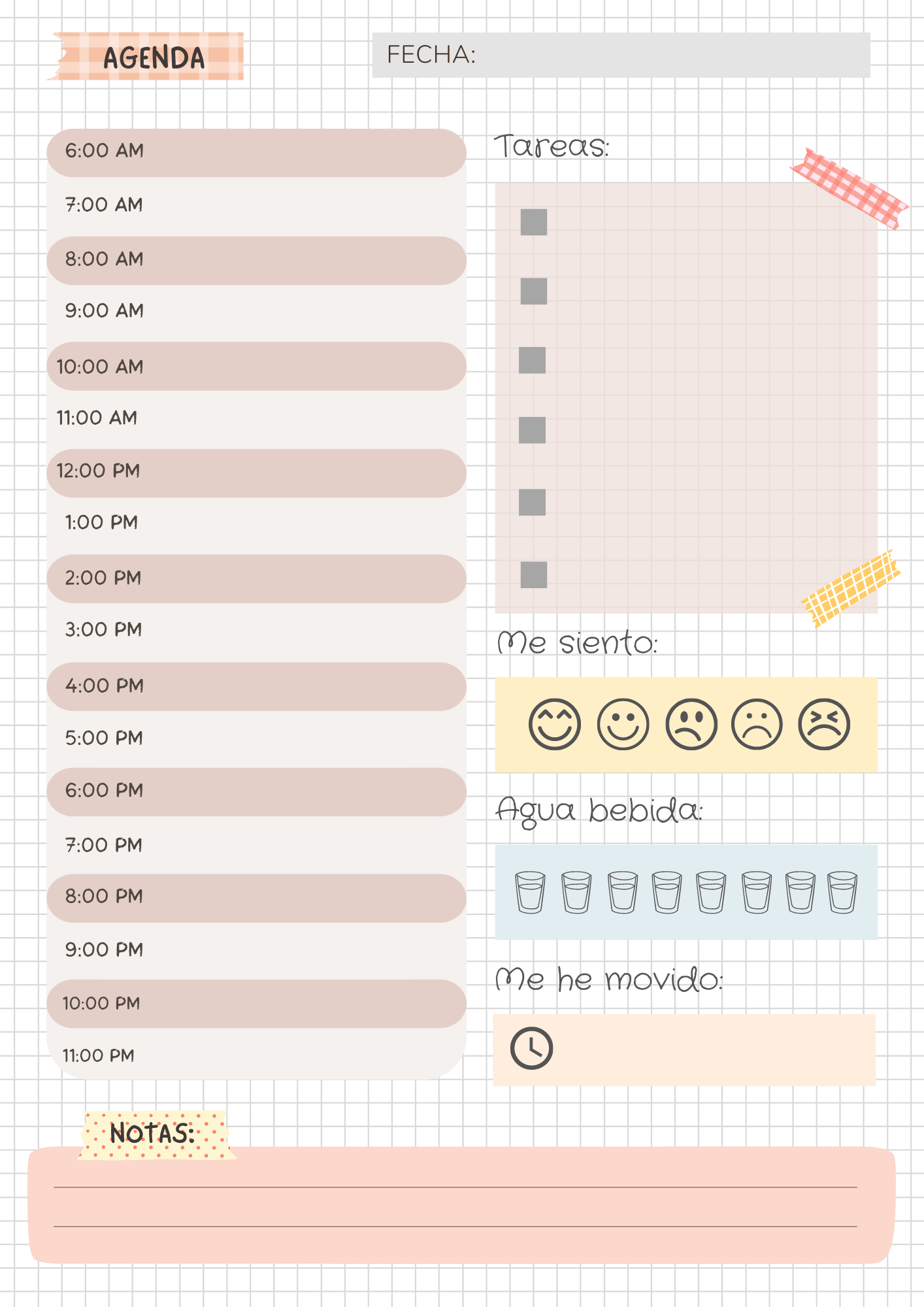 Si tenemos en casa niños y niñas que ya escriben o que son más mayores, también hay plantillas de agendas, diarios personales y organizadores de su día a día, para que se acuerden de lo que hacen cada día, guarden sus recuerdos más preciados o se apunten eventos importantes.