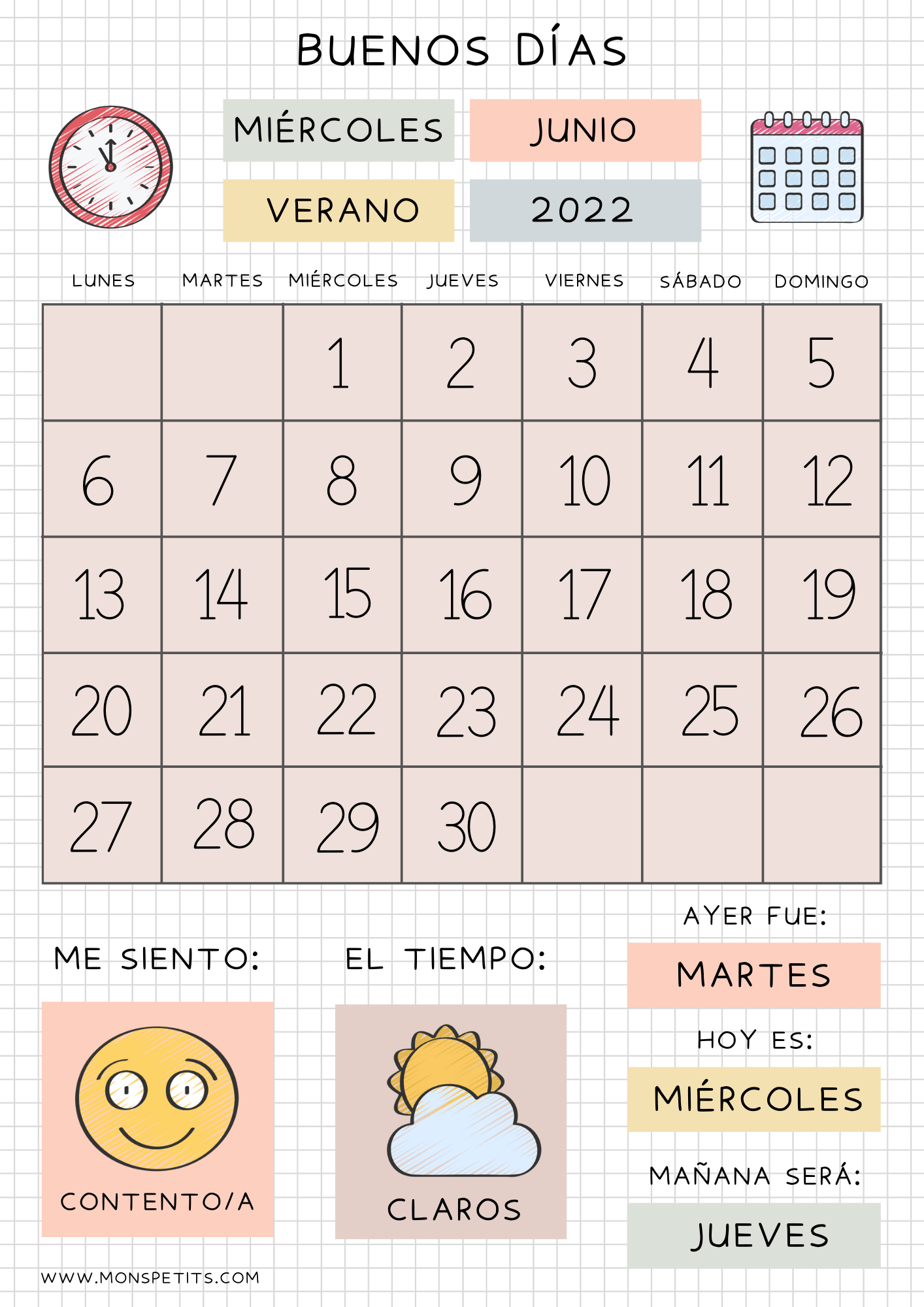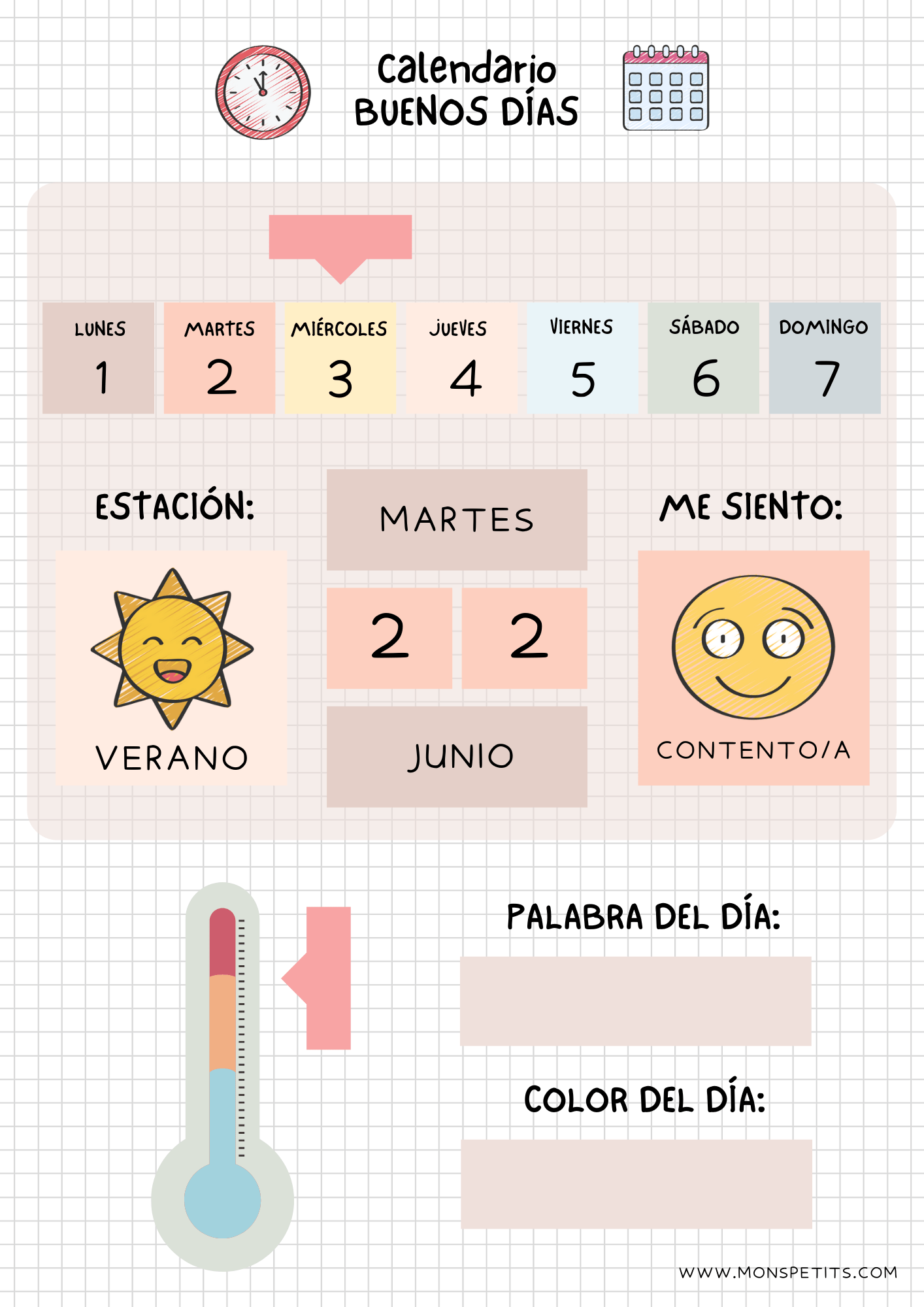 Los calendarios ayudan a los niños y niñas a organizarse mentalmente sus días, a situarse en el tiempo y a empezar a comprender los días de la semana y los meses. Con un calendario, les ayudarás a comprender si falta mucho o poco para ciertos eventos, y a rebajar así su ansiedad por algún evento deseado que está por llegar. Tienes dos opciones de calendario para configurar, y otro para rellenar escribiendo las actividades que tenéis planificadas.