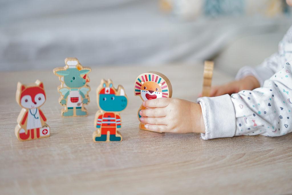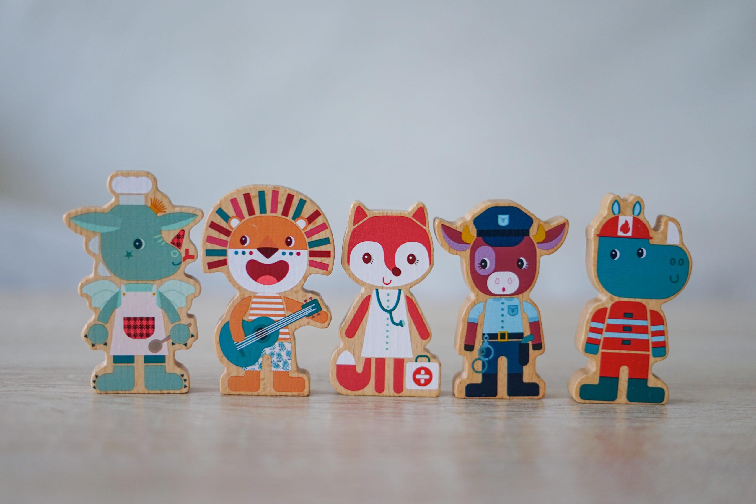 Otro juguete que tenemos de la marca Lilliputiens y que gusta mucho en casa son los personajes de madera de distintas profesiones, el Juego de Super Trabajos. Le encantan a la pequeña porque son animales, y ademas porque podemos jugar a imaginar qué hace cada personaje en su trabajo, qué herramientas utiliza o cómo va vestido/a.