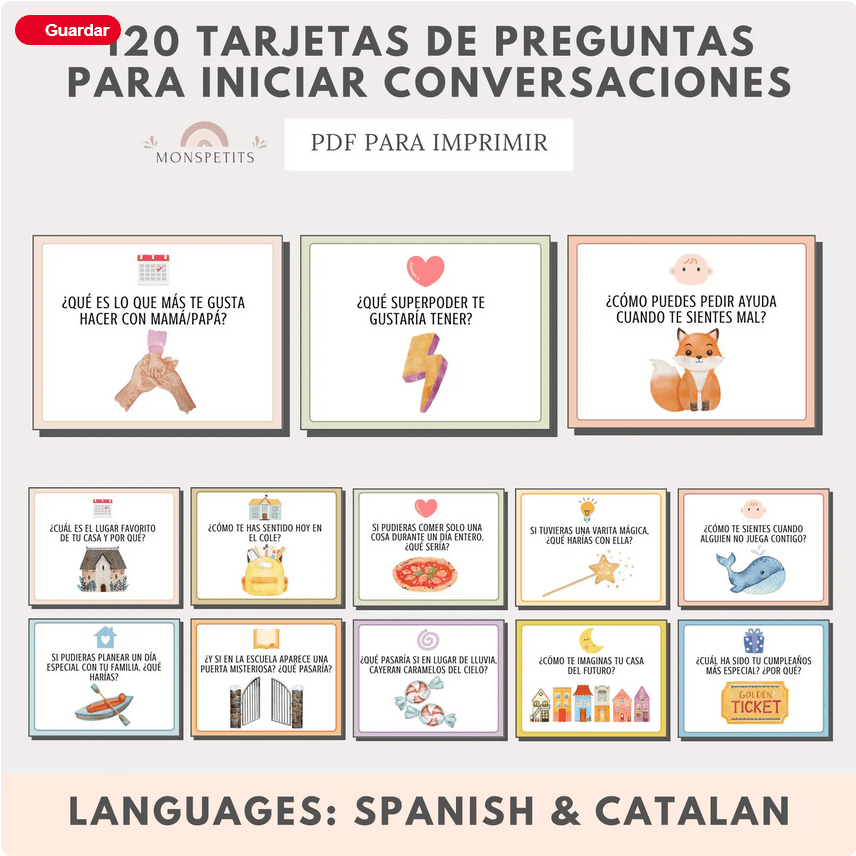 Descubre estas 120 tarjetas con preguntas y cuestiones para iniciar conversaciones con niños y niñas a partir de unos tres años, perfectas para trabajar la expresión oral, mejorar el habla y facilitar la comunicación de los más pequeños.