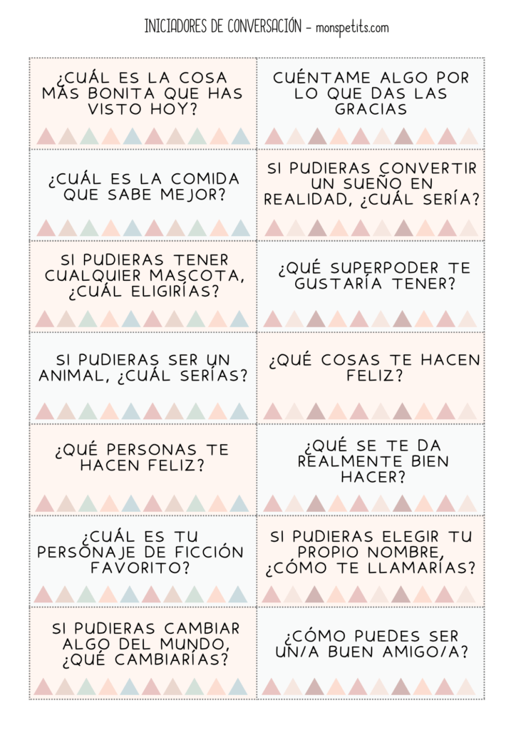 Imprimible gratuito: 50 tarjetas con iniciadores de conversación para niños y niñas