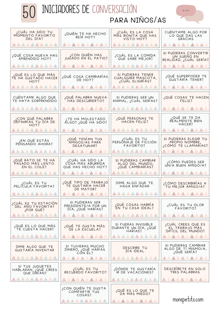 50 Iniciadores de conversación para niños/as con imprimible gratis