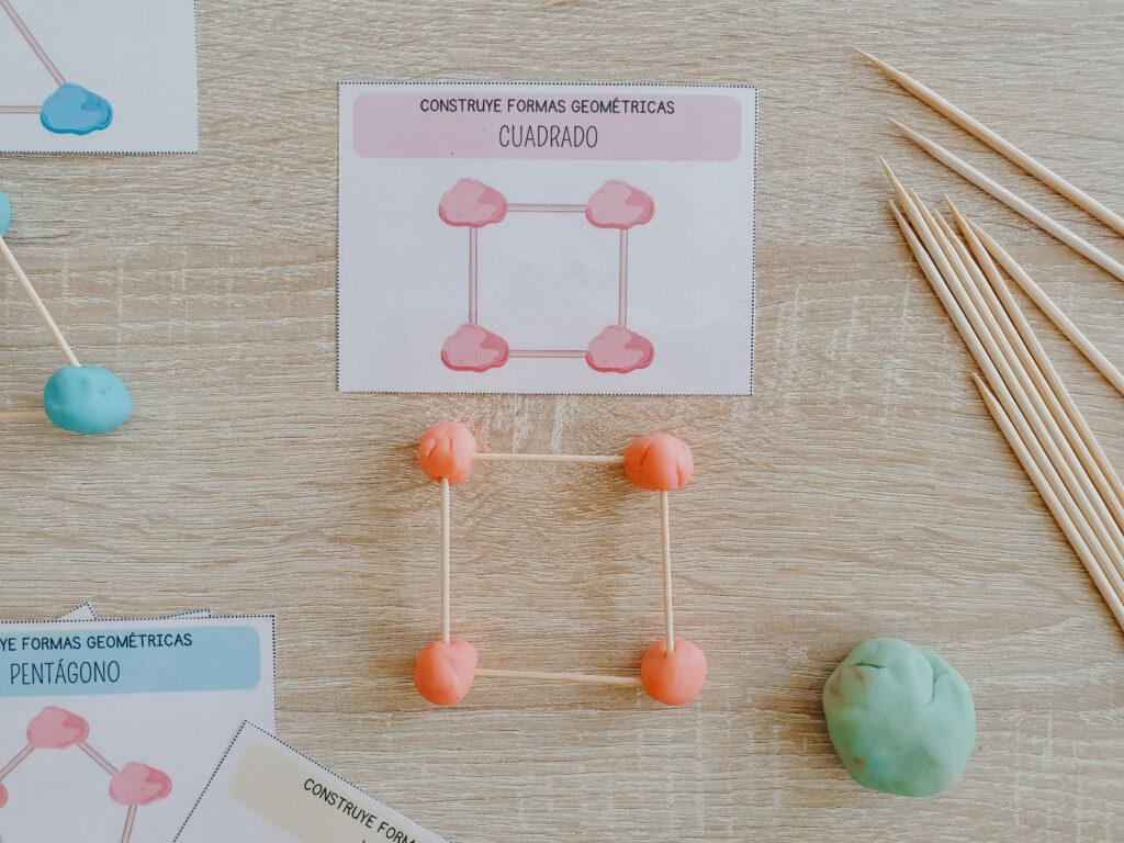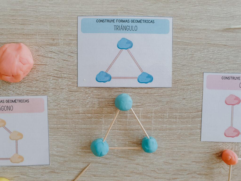 • Tarjetas sencillas de construcción de figuras geométricas en 2d con plastilina y palillos