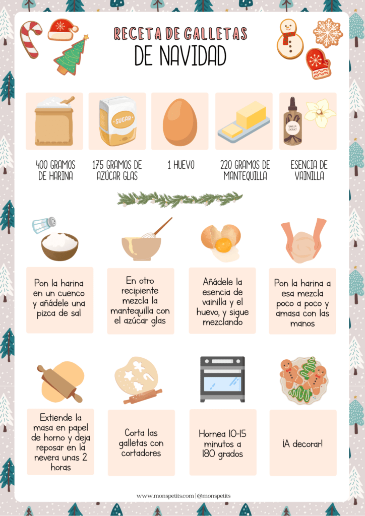 Receta fácil de galletas de mantequilla con formas de Navidad + actividad pdf gratis