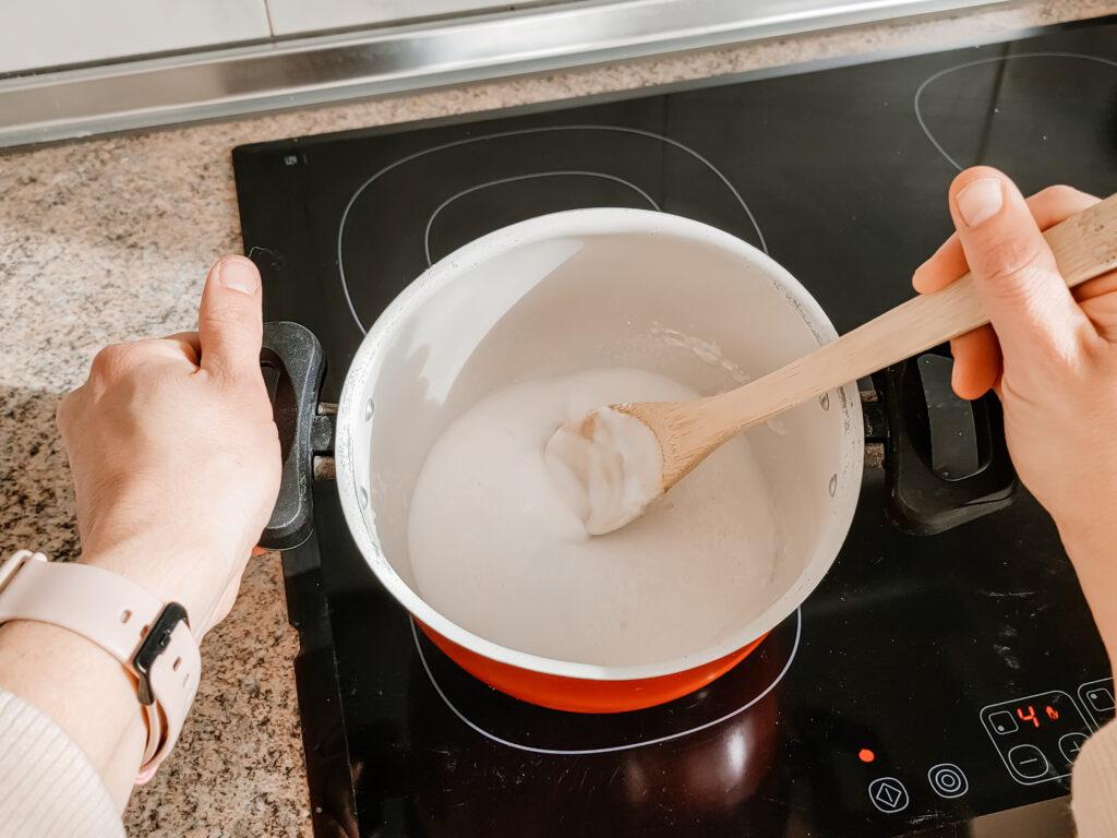 - Retira la cacerola del fuego y deja que la mezcla se enfríe durante unos minutos.