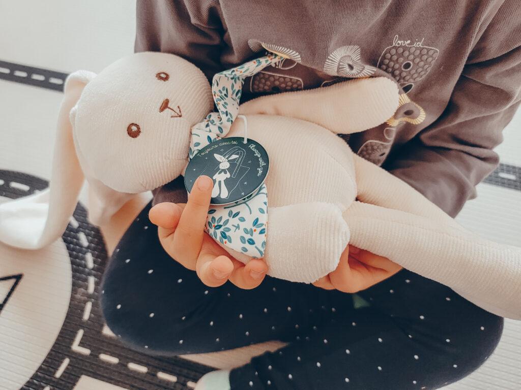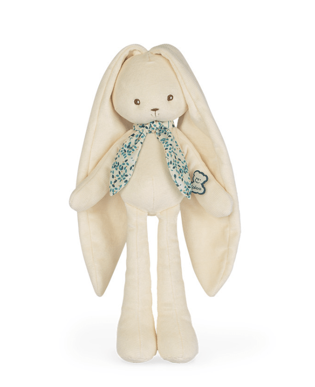 Entre la gama de peluches de Kaloo se encuentra el conejito muñeca color crema. Este encantador conejito es un compañero de aventuras que se puede llevar a cualquier lugar. Tiene unas divertidas orejas largas y su cuerpo alargado hace que sea muy fácil abrazarle y acurrucarse con él. Mi pequeña de 2 años lo ha usado en la transición a su propia cama y lo abraza cada noche para quedarse dormida. A mí me encanta ver cómo lo adora y encuentra consuelo en su compañía, en esta nueva etapa de dormir solita en su cama.
