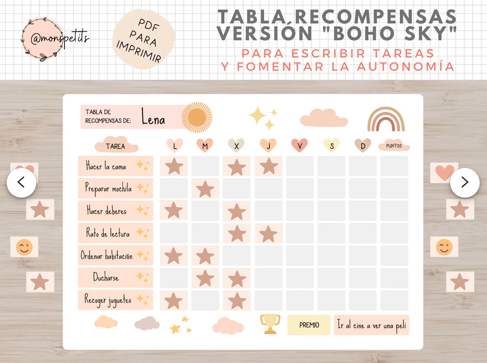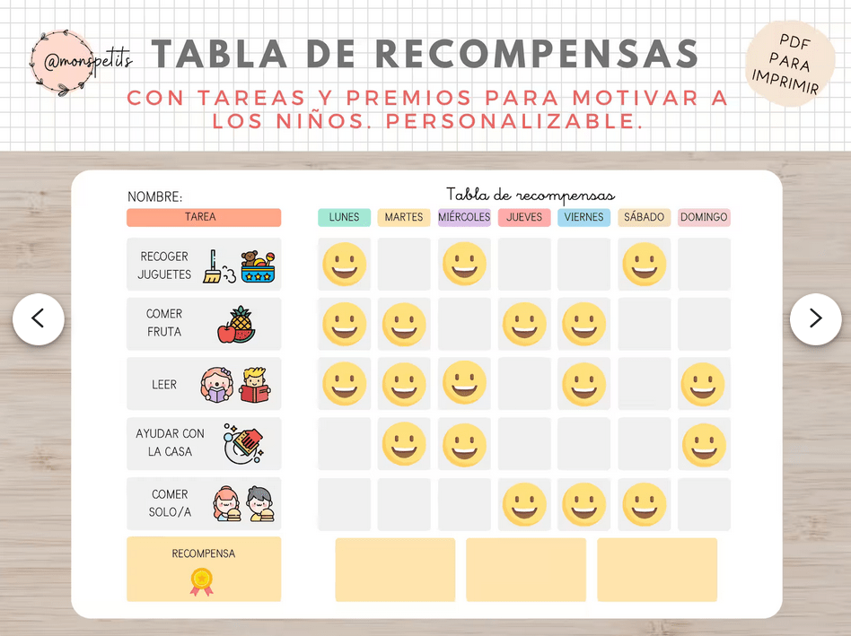 Las tablas de recompensas son una excelente manera de motivar a los niños y niñas a seguir sus rutinas y completar sus tareas. Estas tablas permiten a los padres y educadores establecer metas y recompensas que alienten el buen comportamiento y la responsabilidad. Por ejemplo, si un niño sigue su rutina de la mañana toda la semana, puede ganar una recompensa como elegir una actividad especial el fin de semana.