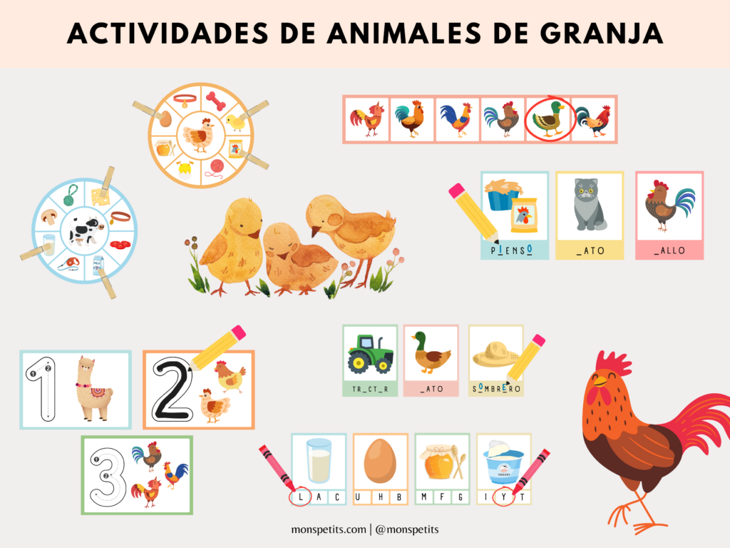 Actividades de lectoescritura con vocabulario de la granja