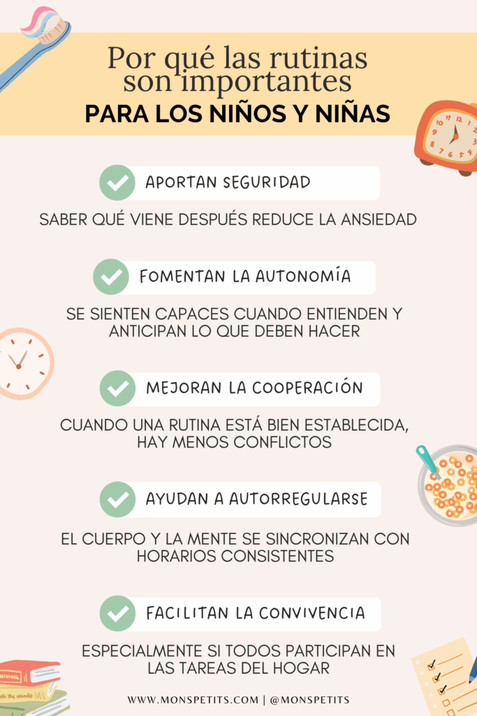 ✔️ Mejoran la cooperación: cuando una rutina está bien establecida, hay menos conflictos.