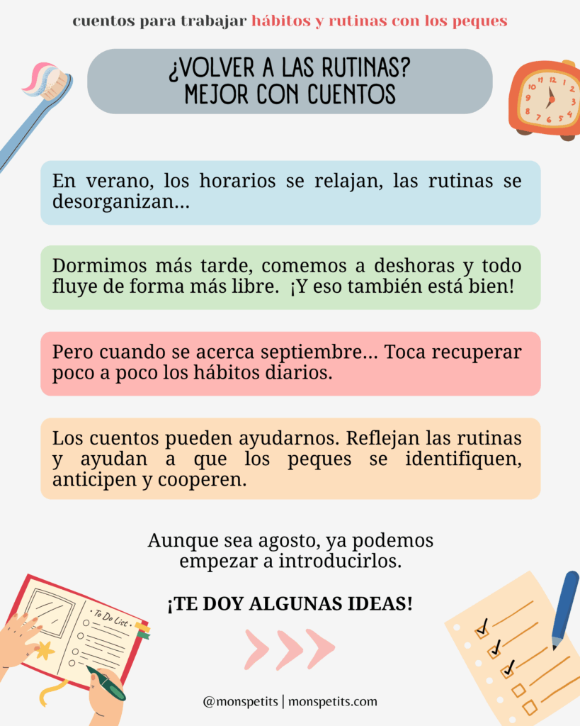 Por eso hoy quiero compartir contigo una selección de cuentos que les van a entretener y, además, les ayudarán a reforzar esas rutinas cotidianas que tanto necesitan los peques en su día a día.