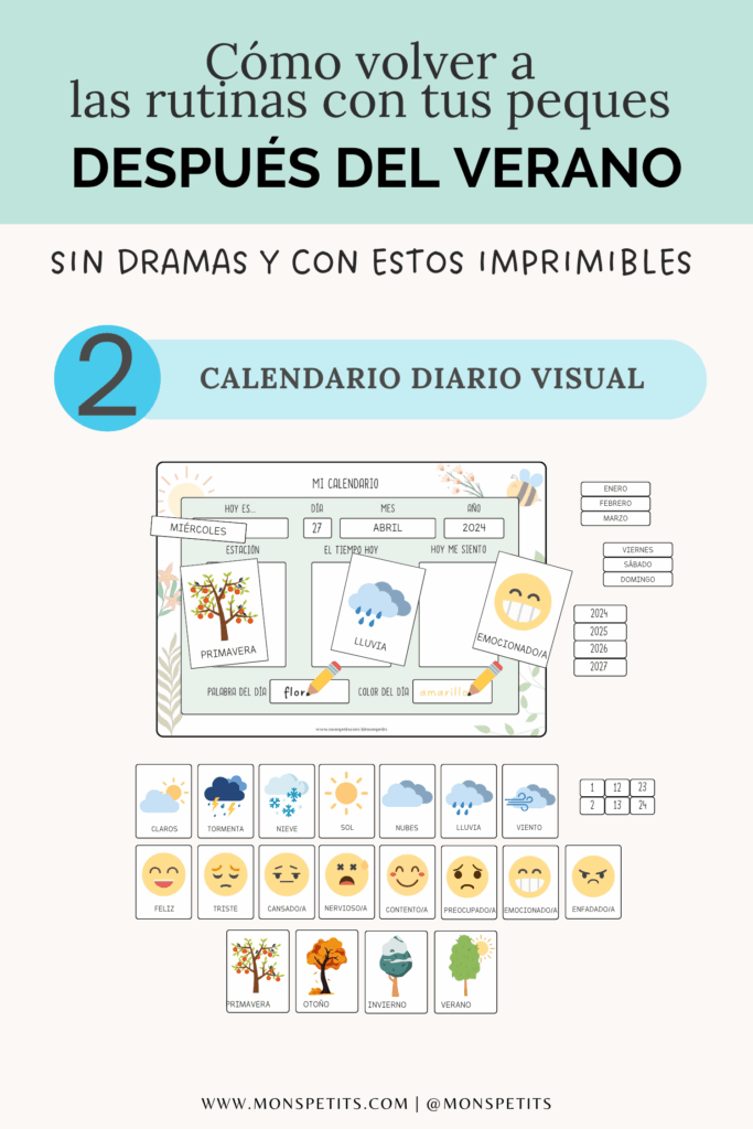 ✅ Calendario diario con secciones para el día, el tiempo, la estación y las emociones