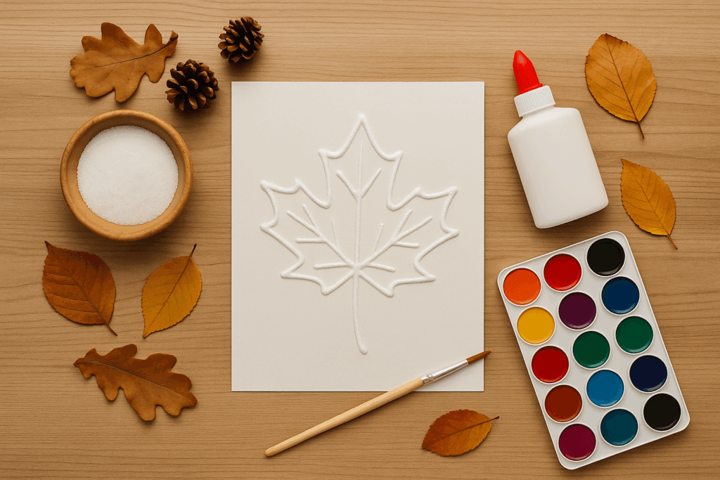 El otoño es la estación perfecta para dejar volar la imaginación con los colores cálidos de las hojas. Hoy te propongo una actividad sencilla y sorprendente: pintar con sal. Con unos pocos materiales que seguro ya tienes en casa, los peques podrán dar vida a preciosas hojas otoñales mientras exploran texturas y colores.