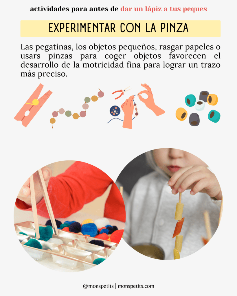 La pinza digital es la base para una correcta prensión del lápiz. Cuanto más pequeños los objetos, mayor precisión se trabaja.