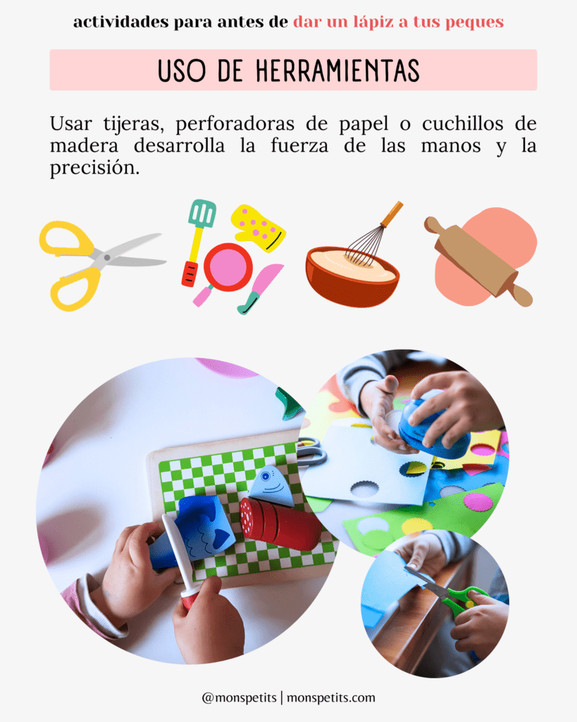 Utilizar herramientas desarrolla la fuerza de la mano, la precisión y la coordinación. No se trata solo de cortar papel: se trata de entrenar músculos y control.
