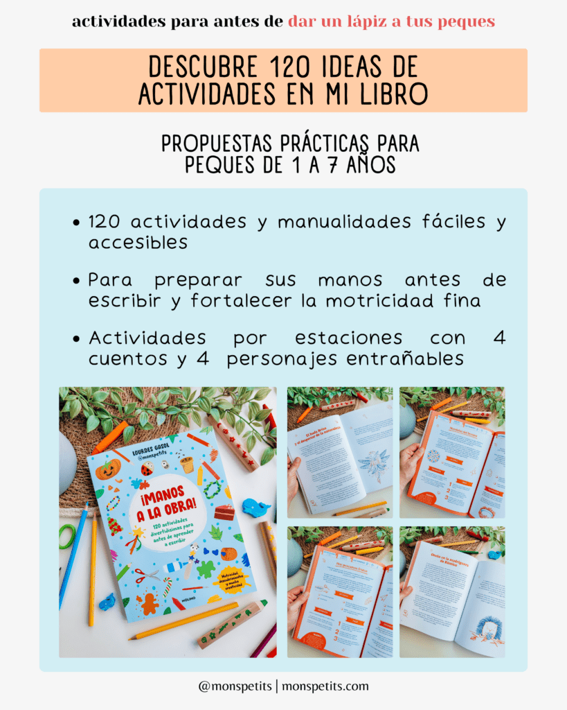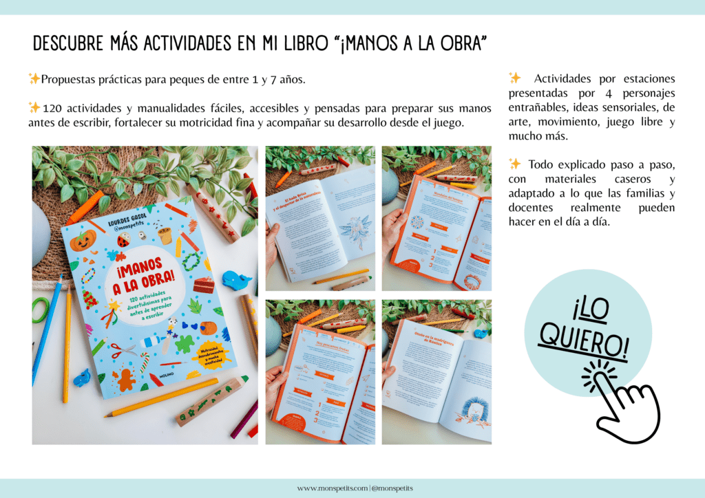 Después de muchos meses de trabajo, reuní todas estas habilidades en mi libro ¡Manos a la obra!. No es un cuaderno de letras, es una guía práctica para trabajar: