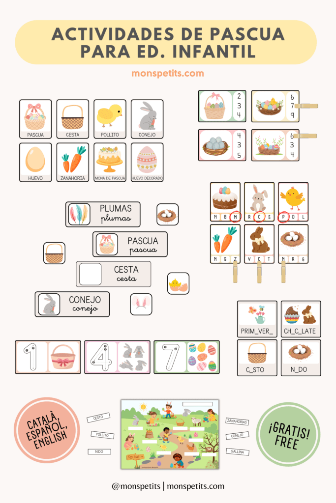 En este artículo encontrarás ideas educativas para trabajar la Pascua en Infantil y, además, podrás descargar un imprimible gratuito en español, català e inglés, listo para usar tanto en casa como en el aula.